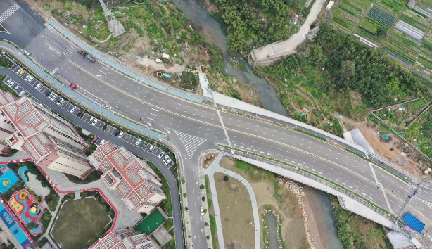 羅橋節(jié)點(diǎn)改造提升工程2019年11月開工建設(shè),2021年8月建成通車。該項(xiàng)目沿北環(huán)西路、龍興路設(shè)置南北分離式雙向四車道高架,南側(cè)接龍興路,北側(cè)接現(xiàn)狀北環(huán)西路,高架靠東側(cè)布置(緊貼烈士陵園),橋梁總長約1140米,凈寬約7.7米;在雙洋路、龍川北路、北環(huán)西路設(shè)置人行天橋,與山體步道銜接,以完善慢行系統(tǒng);在烈士陵園山體下采用明挖回填方式設(shè)置框涵,長度約225米,凈寬10.75米。工程投資1.4億元。